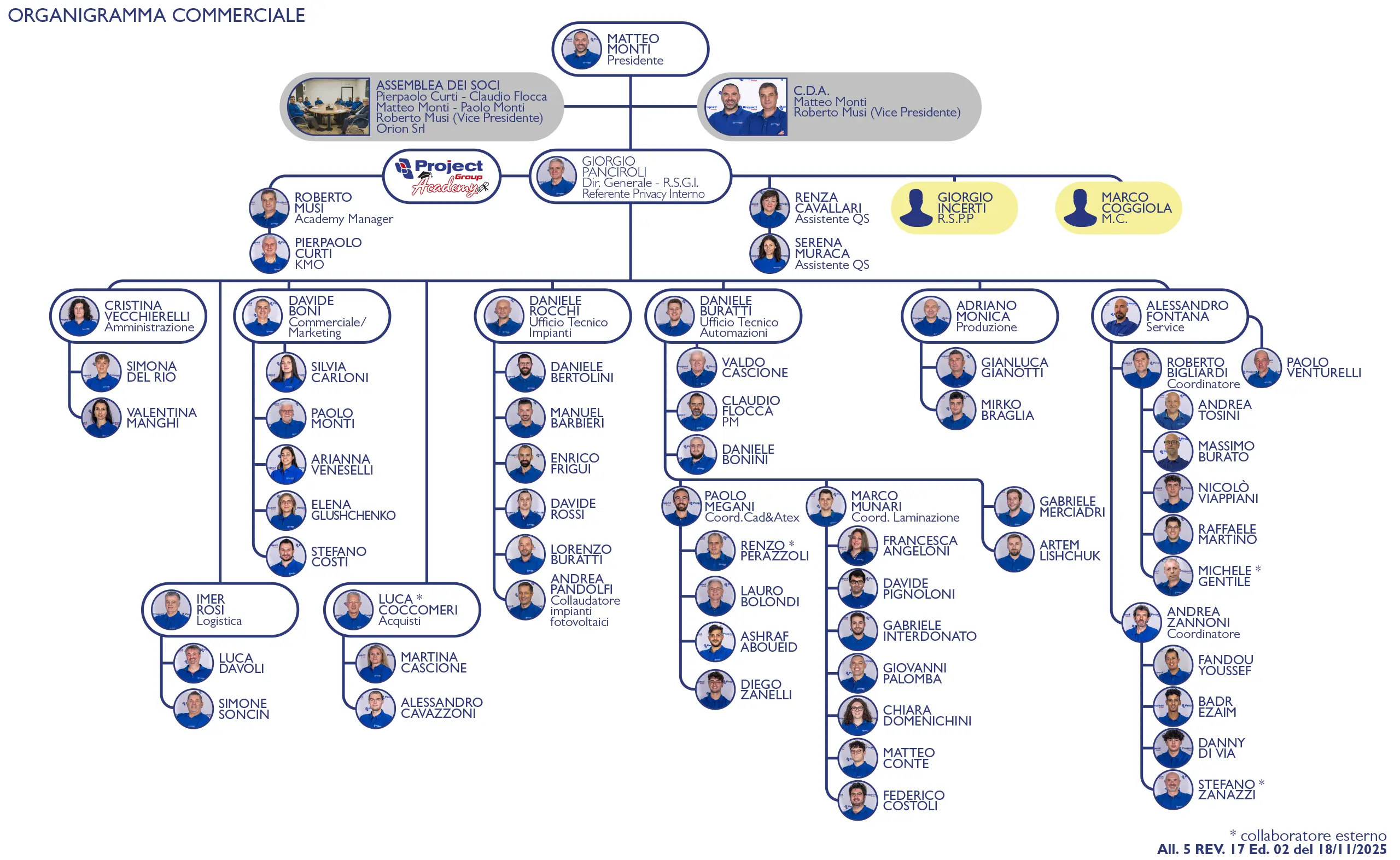 Nell’ambito del naturale passaggio Generazionale, Matteo Monti e Claudio Flocca, entrano a svolgere a pieno titolo, il ruolo di Soci della Project Group Srl.
