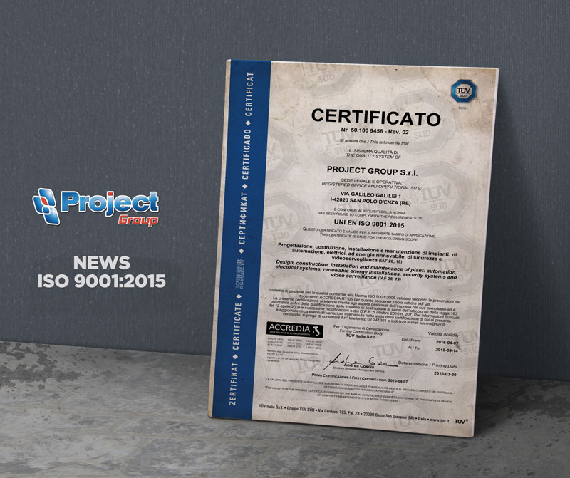 ISO 9001:2015, Project Group aggiorna la certificazione